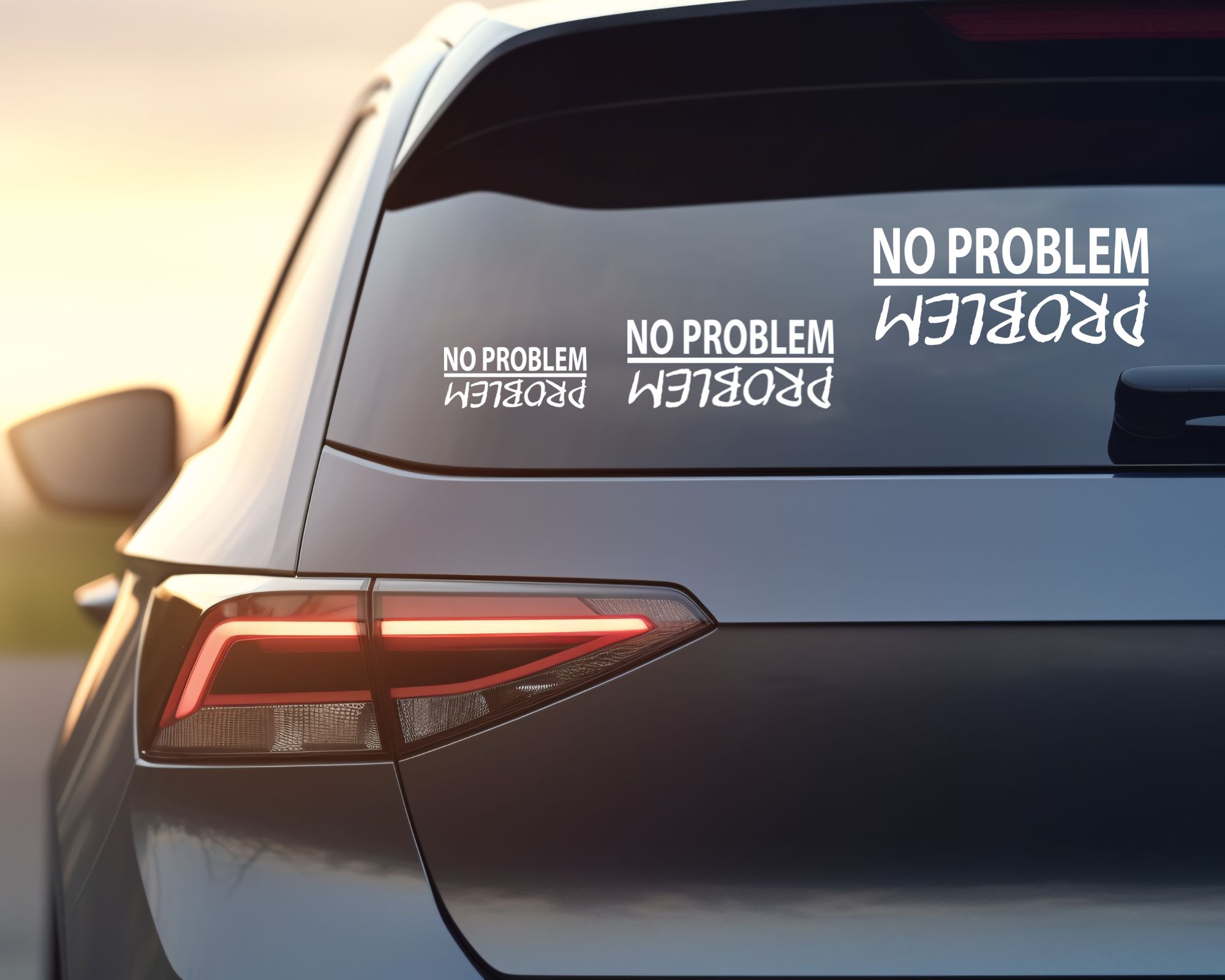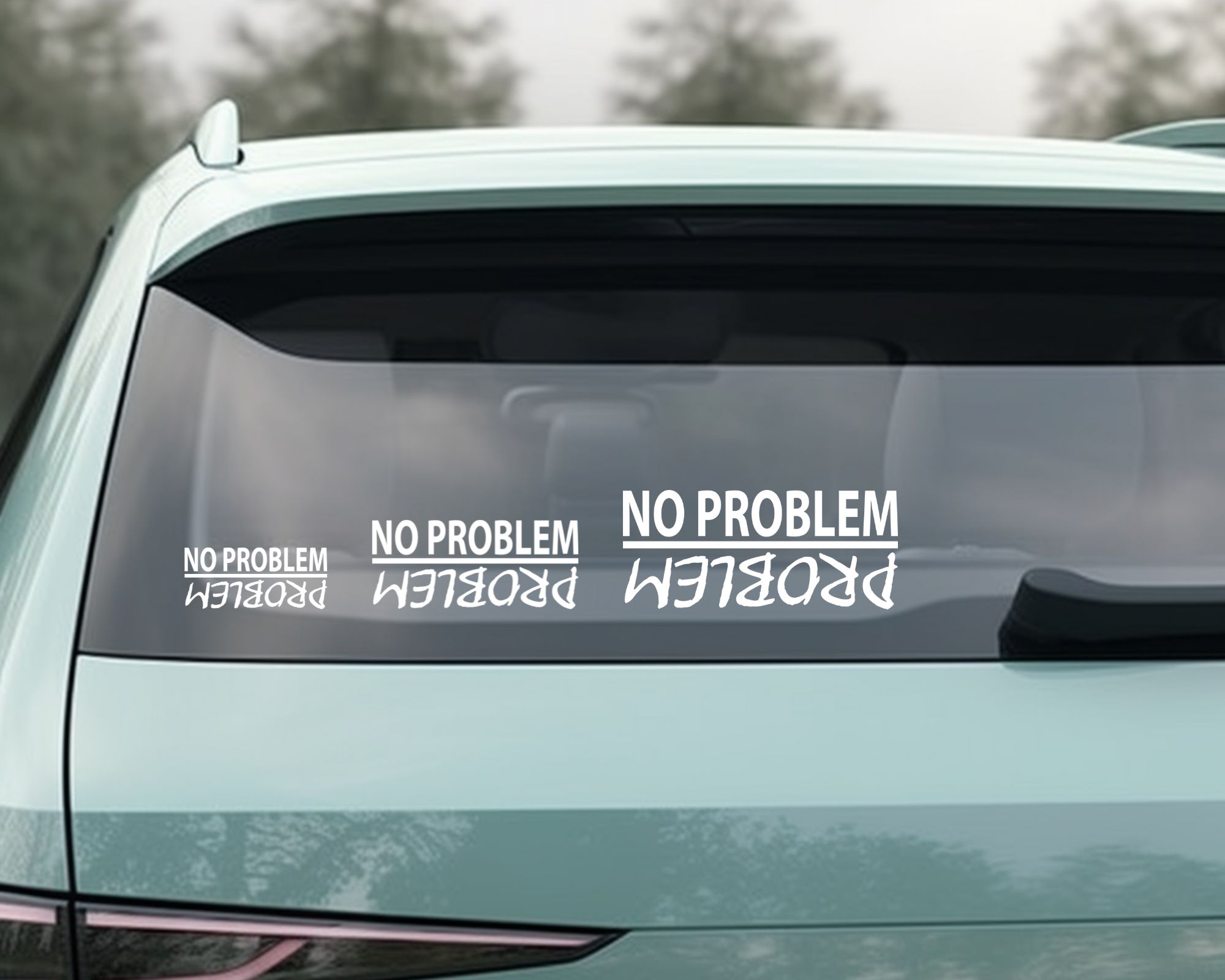 No Problem / Problem White Vinyl Car Decal – Waterproof, Durable & Easy to Apply