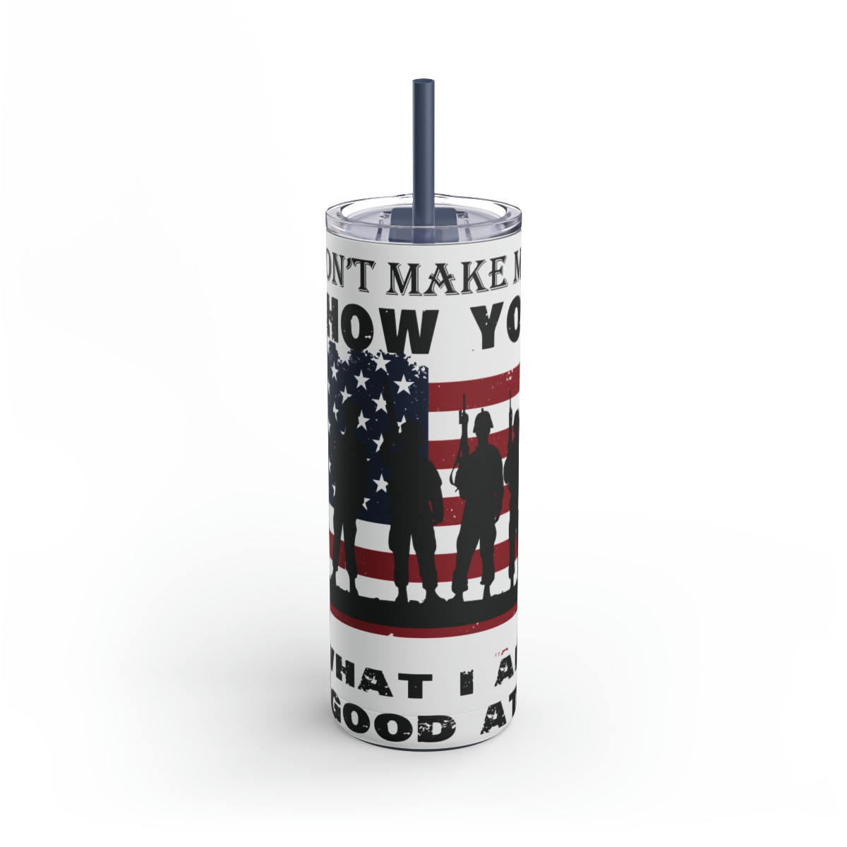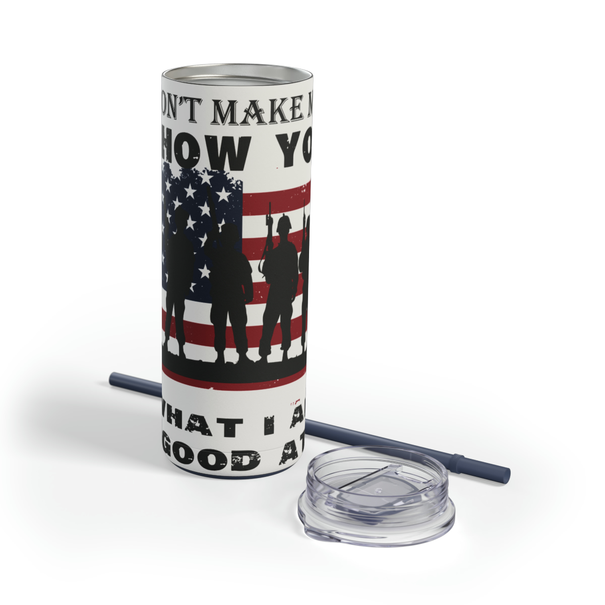 Show off your Veteran Don’t Make Me Show You What I Am Good At pride in fantastic style with our 20oz Stainless Steel Veteran Don’t Make Me Show You What I Am Good At Tumbler! Perfect for busy folks who run on coffee, iced tea, or energy drinks, this durable double-wall insulated tumbler keeps beverages hot or cold for hours.