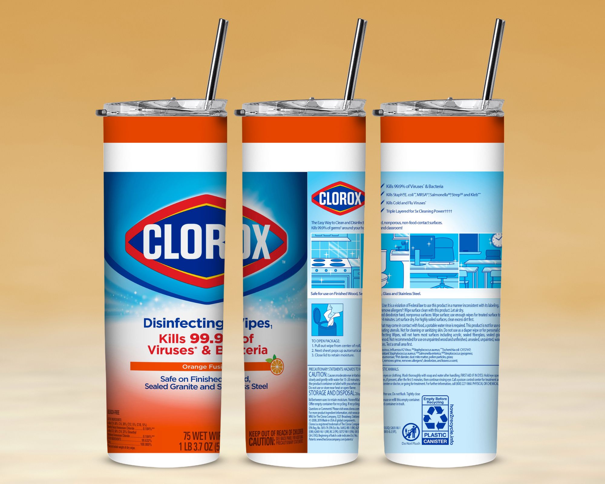 Show off your Clorox Bleach pride in fantastic style with our 20oz Stainless Steel Clorox Bleach Tumbler! Perfect for busy folks who run on coffee, iced tea, or energy drinks, this durable double-wall insulated tumbler keeps beverages hot or cold for hours.
