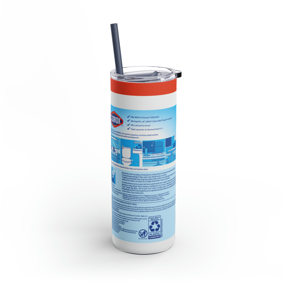 20oz Stainless Steel Clorox Bleach Tumbler with Lid & Straw – Stylish Travel Cup