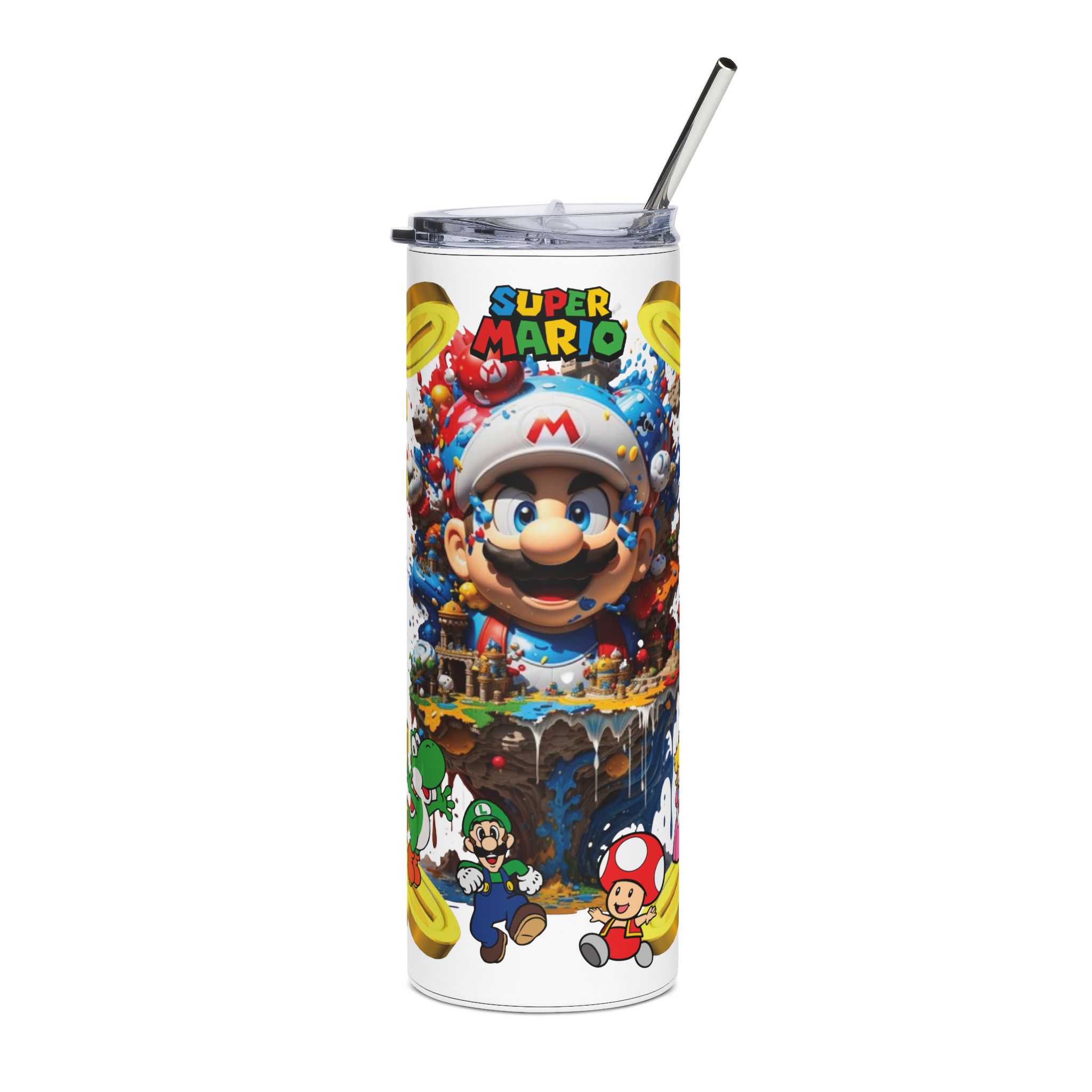 20oz Stainless Steel Mario Brothers Tumbler with Lid & Straw – Stylish Travel Cup