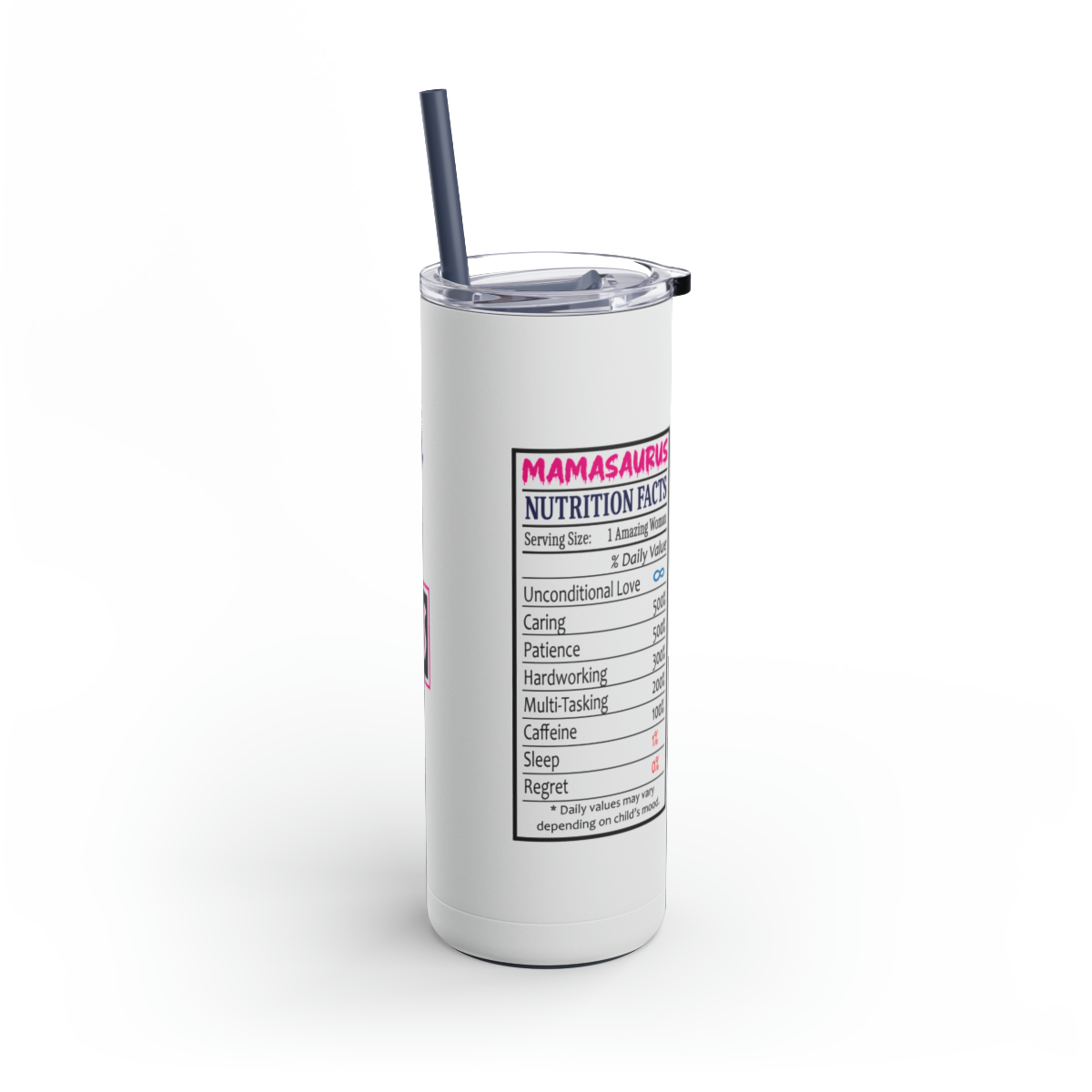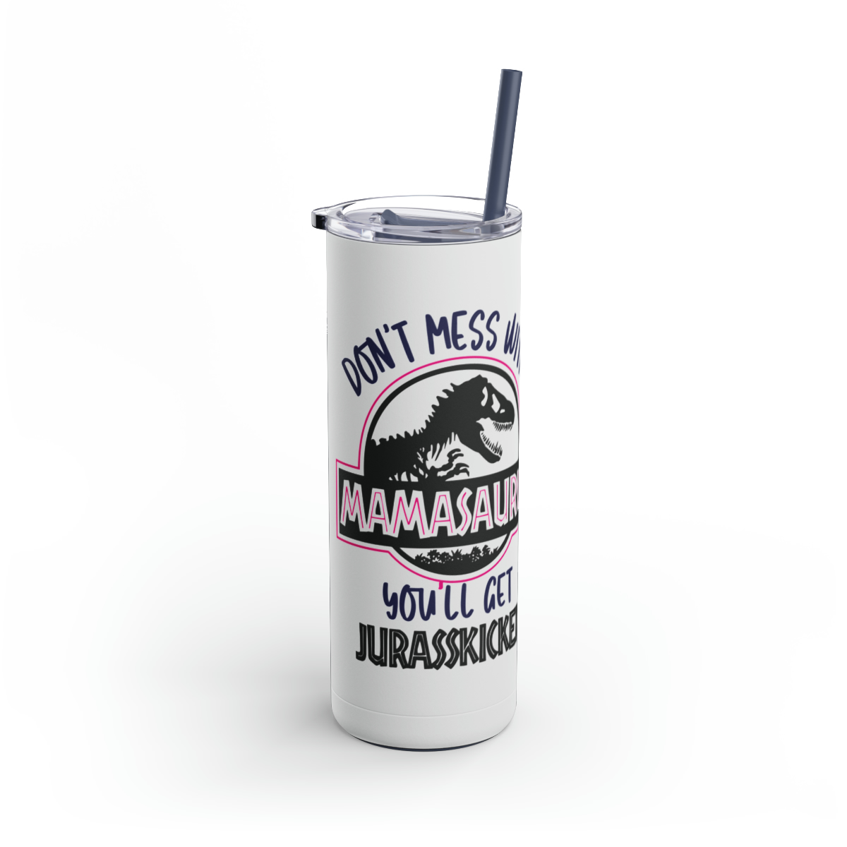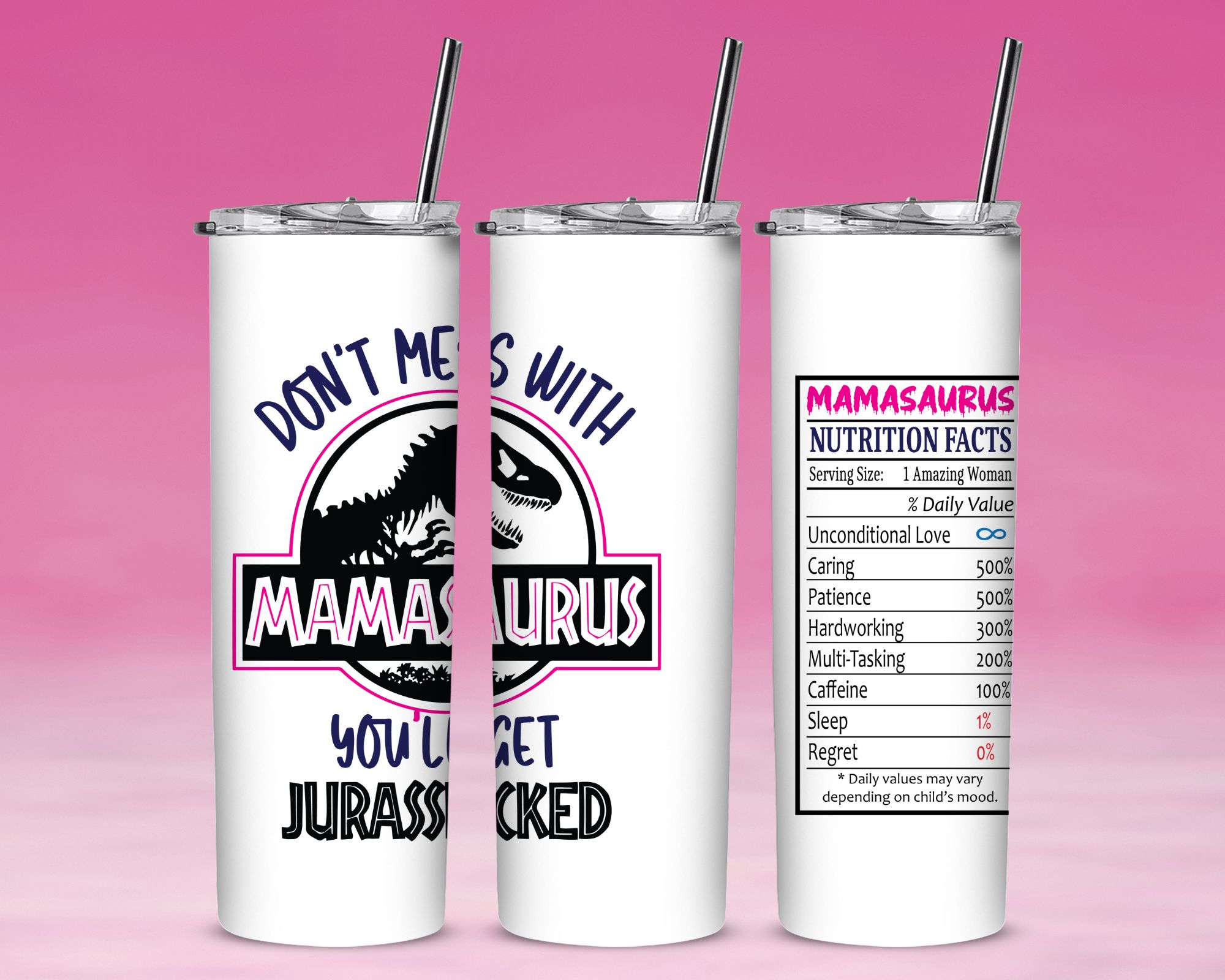 20oz Stainless Steel Mamasaurus Tumbler with Lid & Straw – Cute Dinosaur Mom Travel Cup
